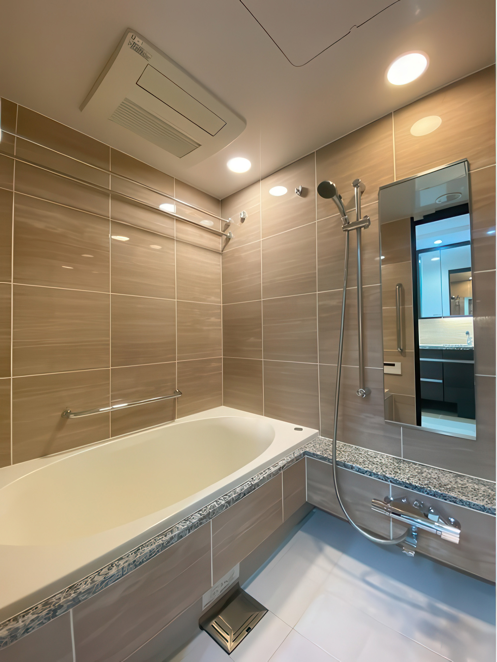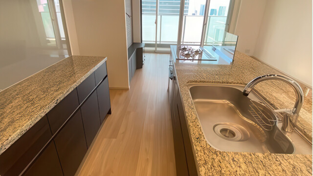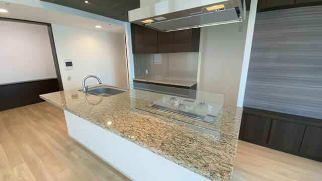 The residence provides 68.74m² of interior space plus a generous 14.22m² balcony and was renovated in May 2025. Highlights include a modern island kitchen, underfloor heating, a spacious living and dining area of over 15 tatami mats, and refined contemporary finishes throughout.