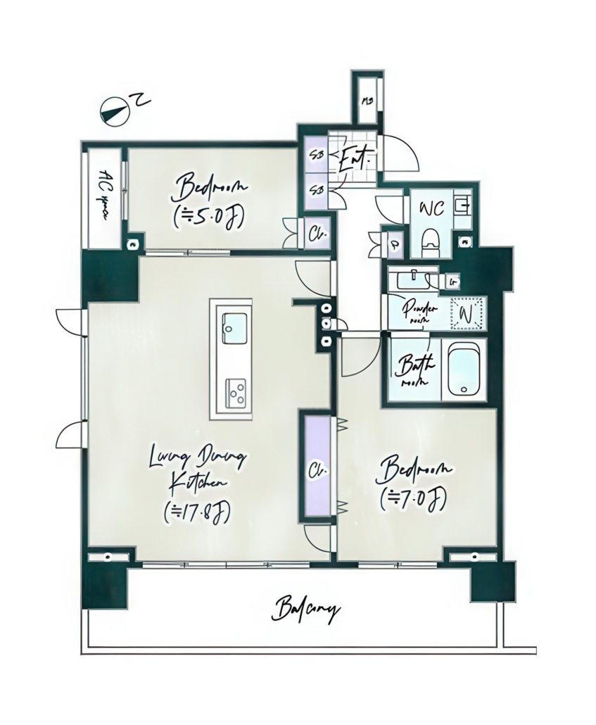 Experience refined city living in this premium 2LDK residence on the 17th-floor top level of Wellith Roppongi, offering incredible, unobstructed panoramic views of the Azabudai Hills development directly across the street and the wider Minato‑ku skyline. With no units above, the apartment enjoys excellent privacy, natural light, and a quiet living environment rarely found in central Tokyo.